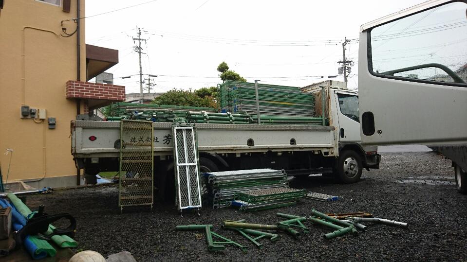 今日は、午前に五光施工の応援で坂之上町に屋根外壁塗装用の足場組み立てに行きました!