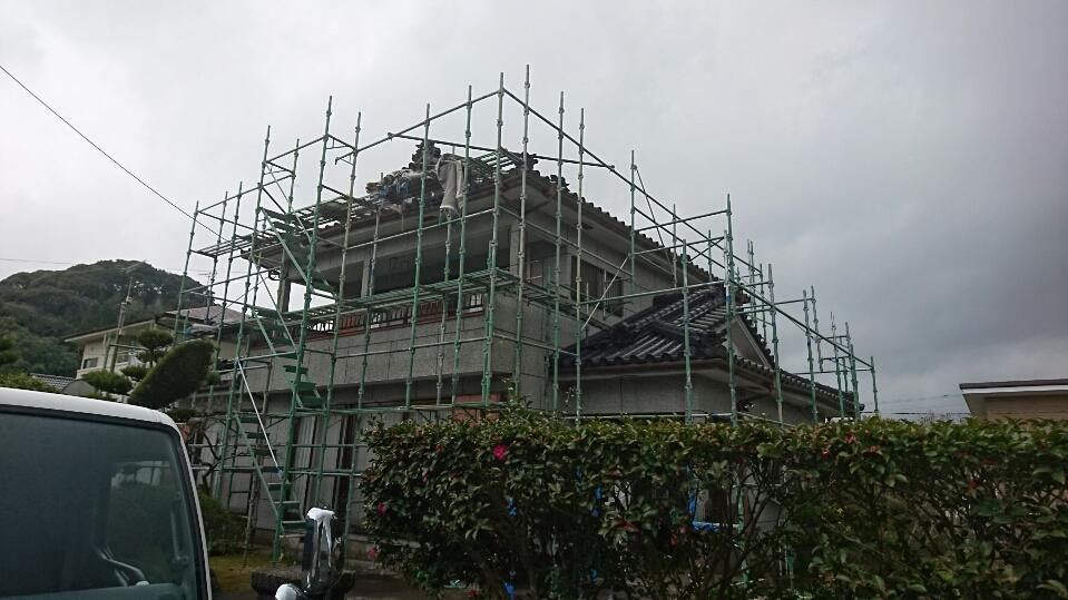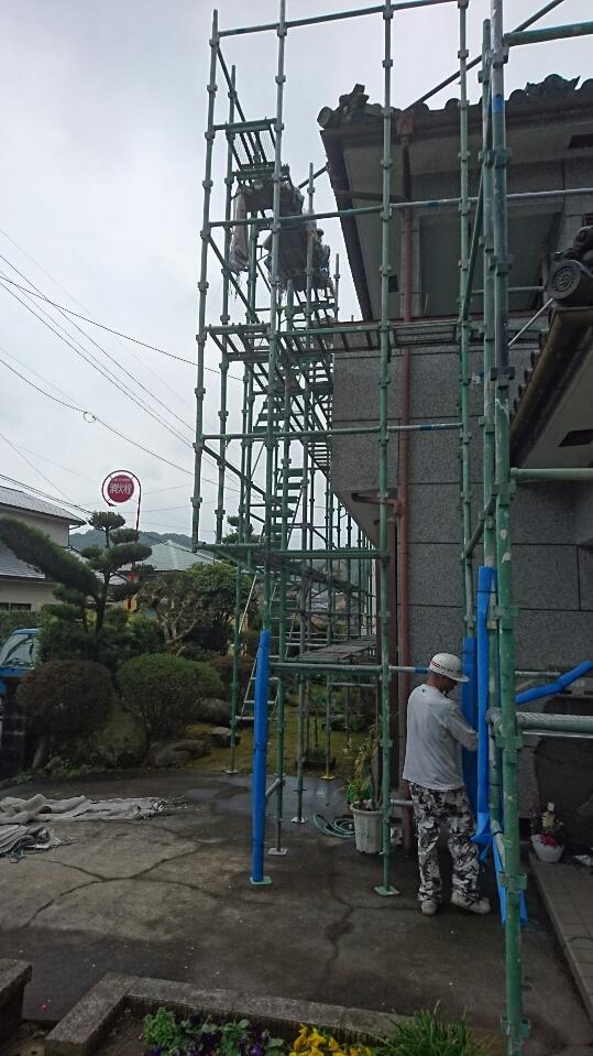 今日は、午前から自社の現場で薩摩川内市で足場解体をしたあと、五光施工の応援で、南林寺町にある南州寺の2面組みでした!