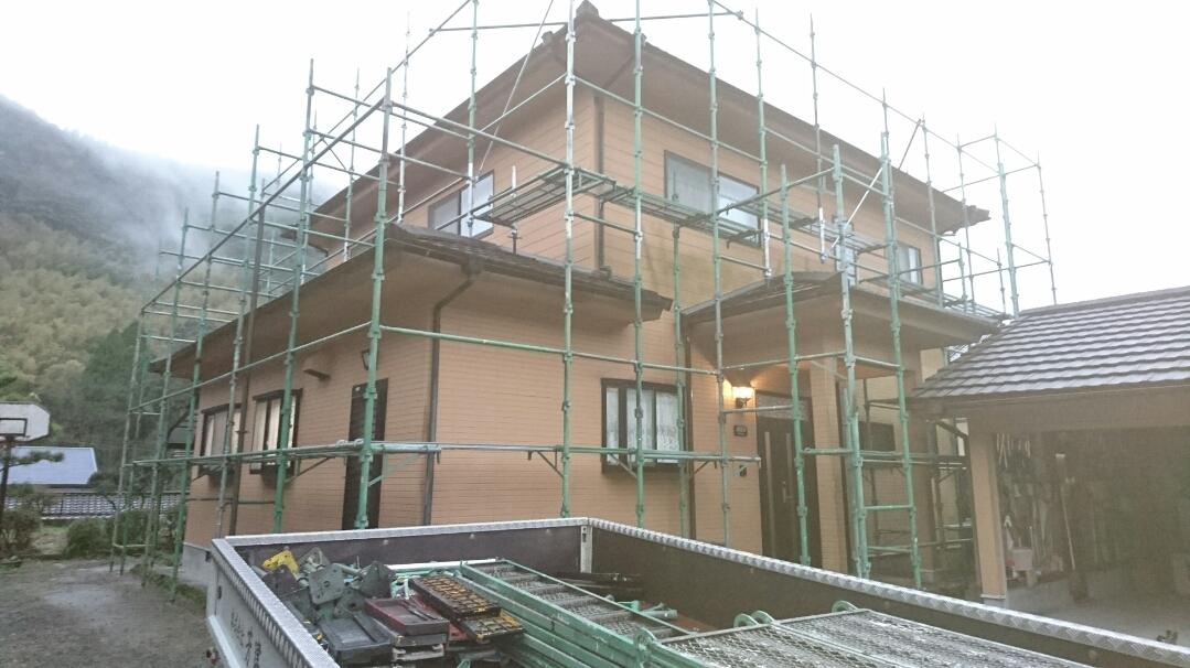 今日は、朝から自社の現場で吉野町で屋根外壁塗装用の足場組み立てに行きました!