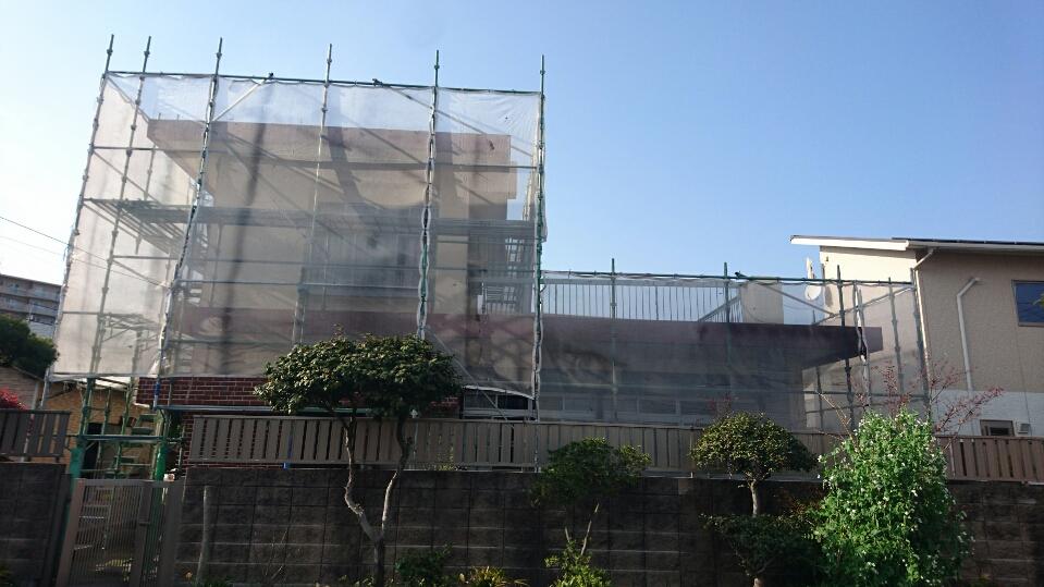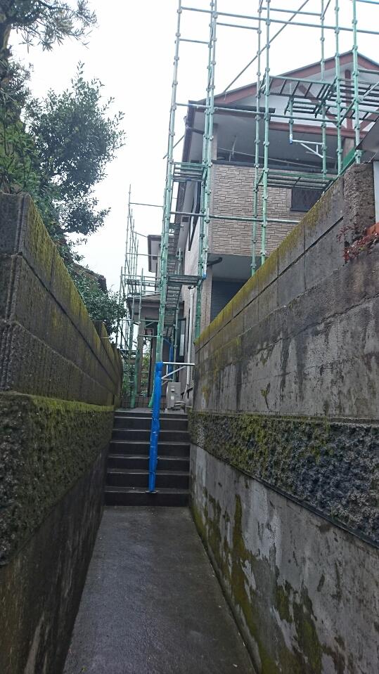 午前は、五光施工の応援で田上台で外壁塗装用の足場組み立てに行ってきました!