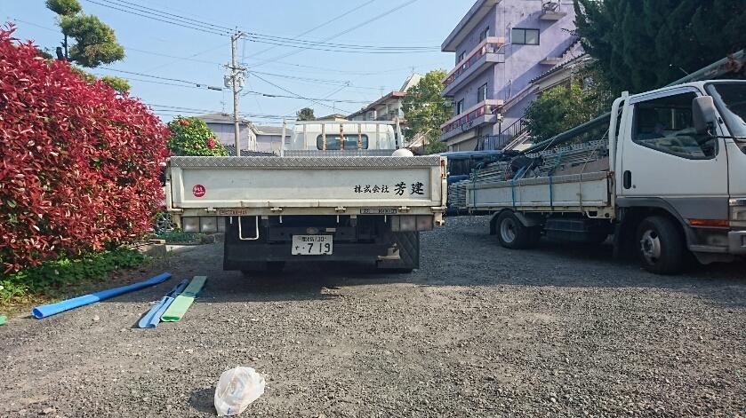 全面シート張りまでを2時半ぐらいで終わり、置き場に帰ってトラックを入れ換えてから、武町で3階建ての1面解体をして本日の作業は終了でした!