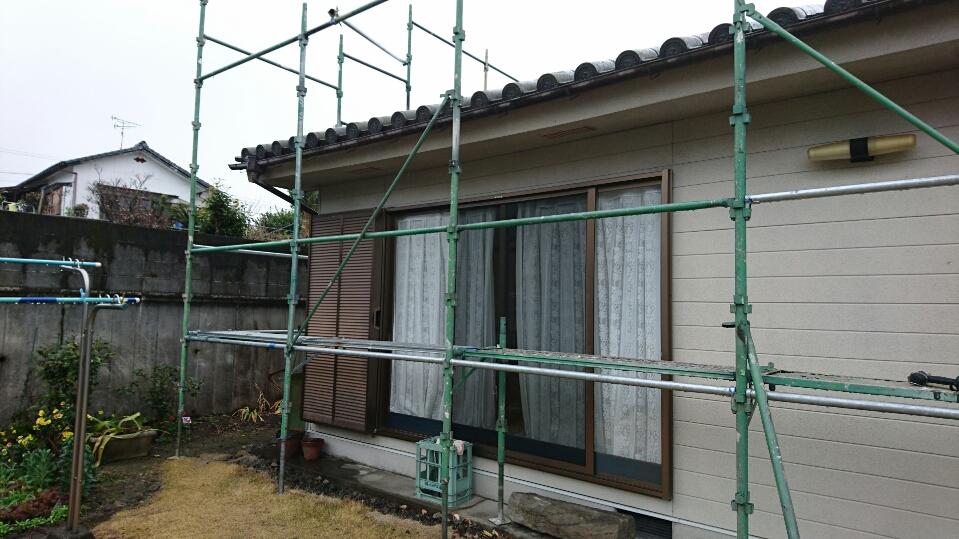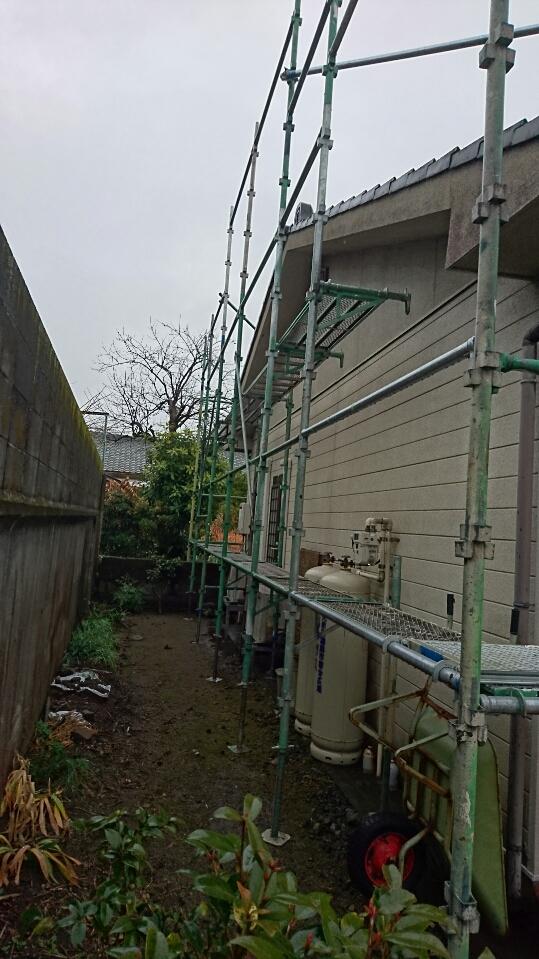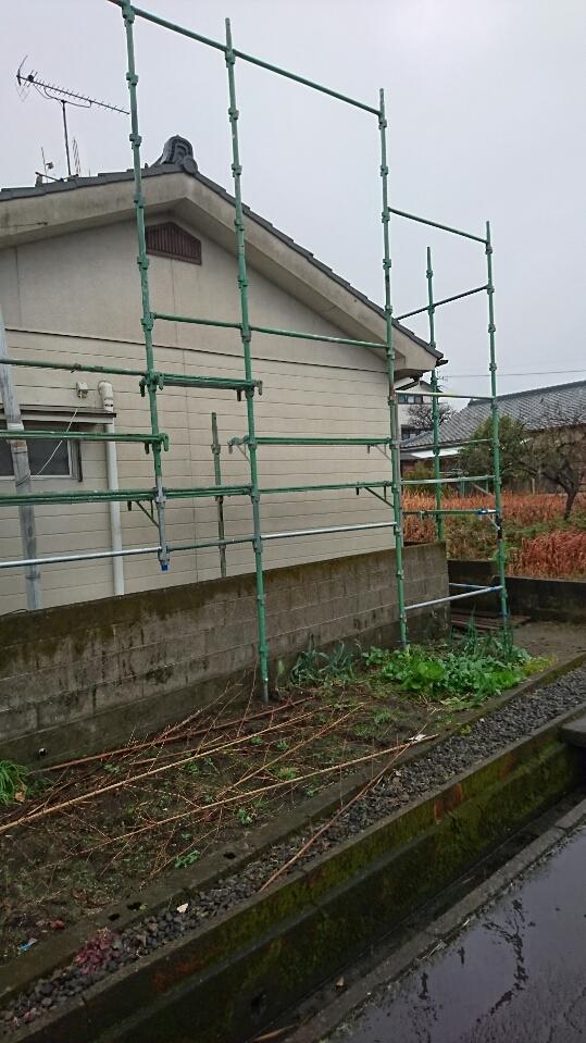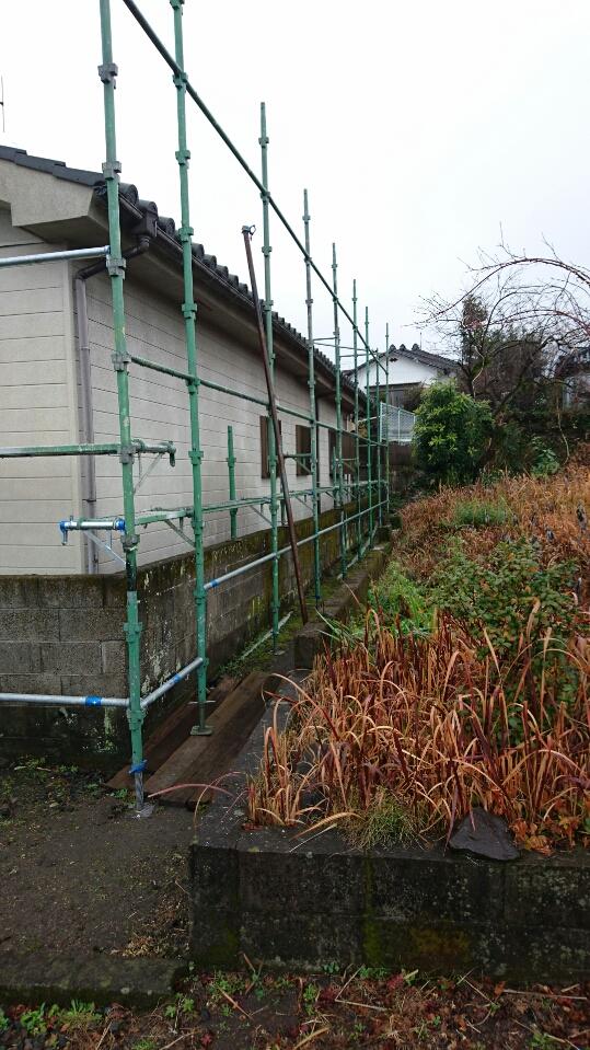 鹿児島県姶良市重冨町で平屋の足場組み立て作業中です!