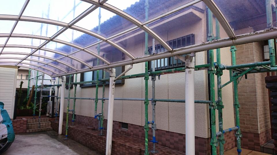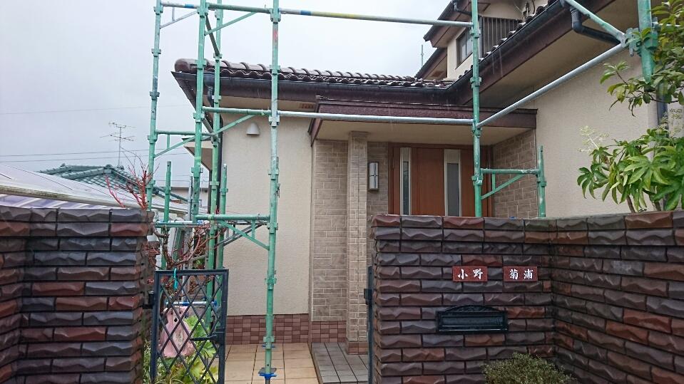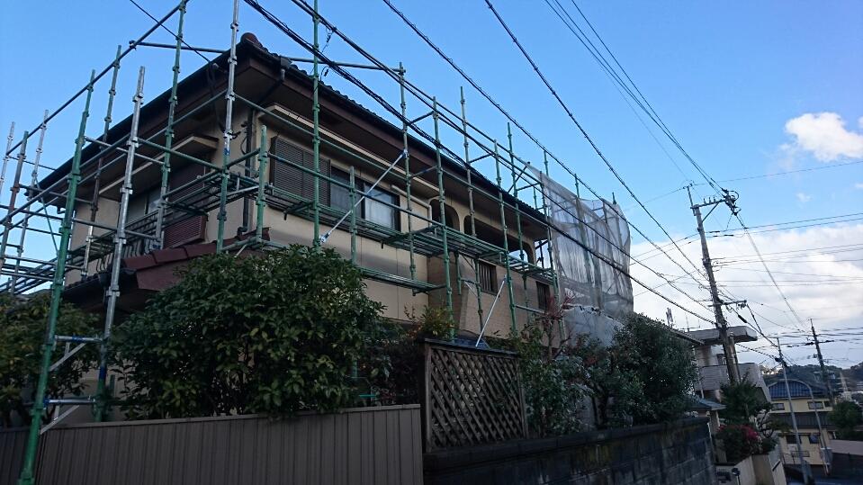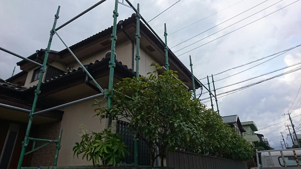鹿児島県鹿児島市伊敷台6丁目で外壁塗装の足場組み立てをしています!