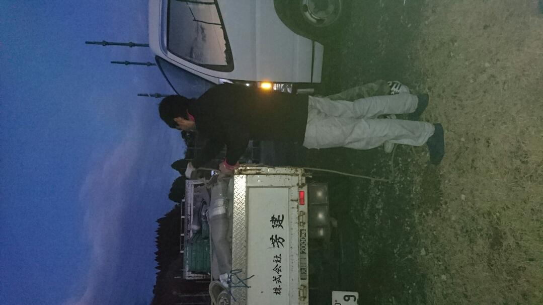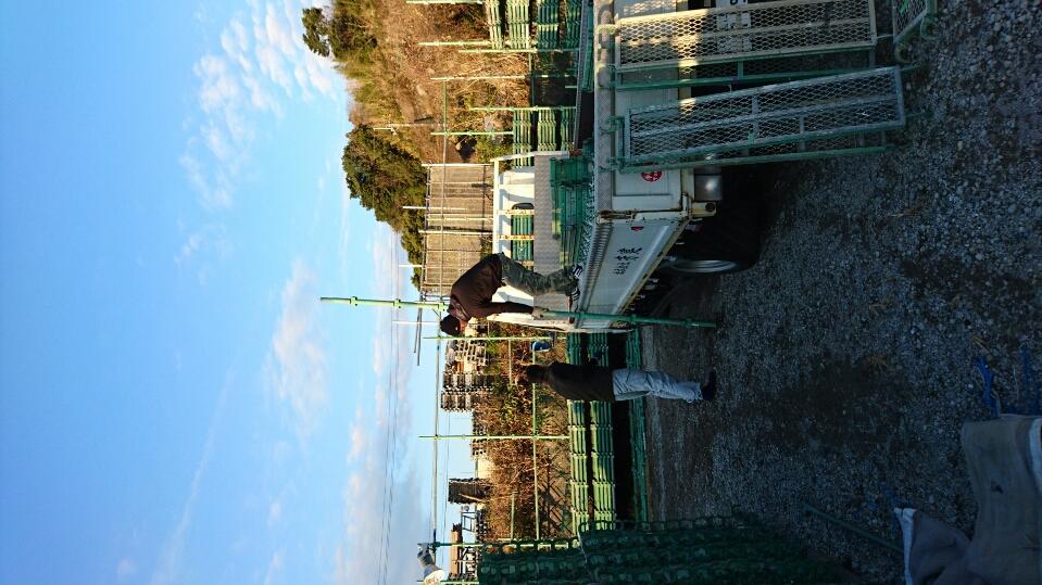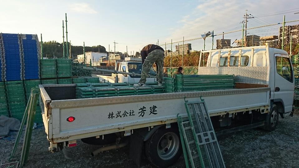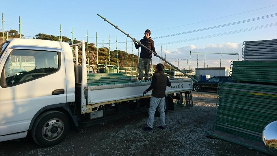 現場後、明日の指宿の足場組み立ての材料積み込みです!